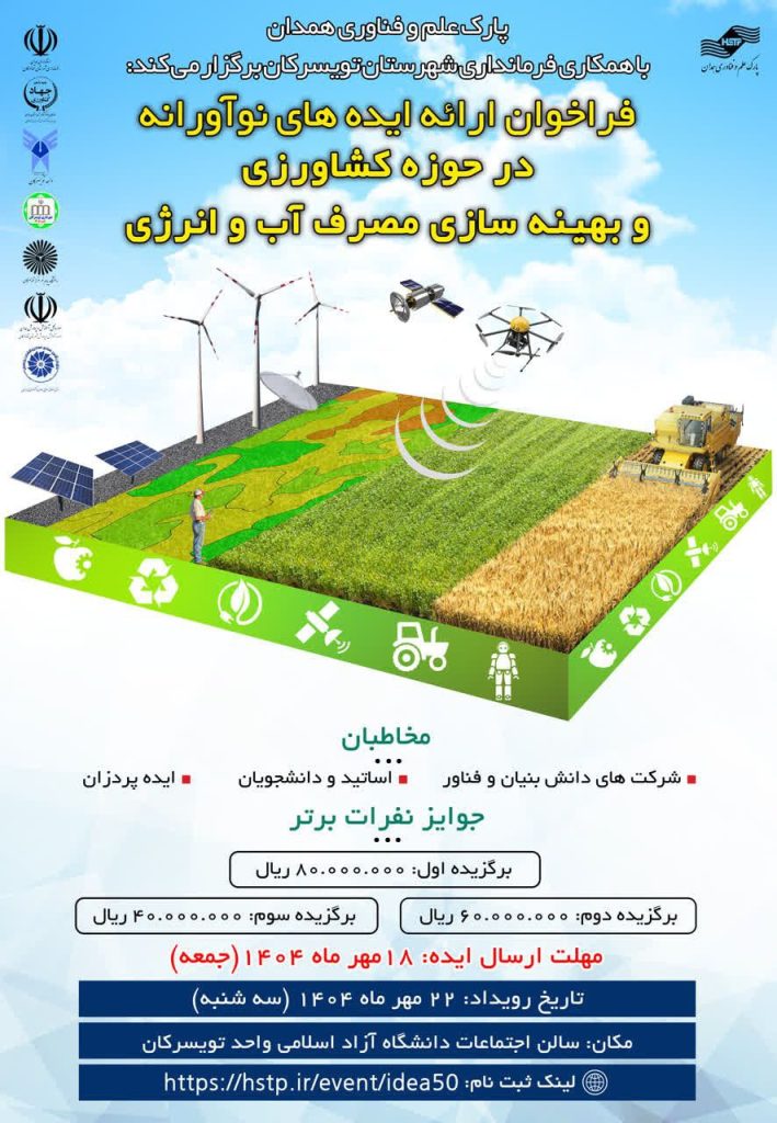 فراخوان ارائه ایدههای نوآورانه در حوزه کشاورزی و بهینهسازی مصرف آب و انرژی